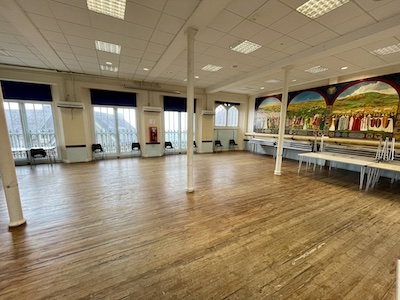 This venue is a typical church hall situated at the top of Gold Hill.